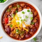 This homemade chili recipe is a hearty and flavorful dish featuring ground beef or turkey, a blend of spices, diced tomatoes, tomato sauce, and kidney beans. Slow-simmered to develop rich, robust flavors, this chili is perfect for a cozy meal and can easily be customized to your taste preferences.