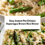 Keywords: Instant Pot chicken recipe, chicken asparagus recipe, brown rice chicken, quick healthy dinner, one pot chicken meal