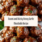Keywords: Honey garlic meatballs, baked meatballs, savory sweet glaze, pork meatballs, easy dinner recipe