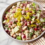 - Chill and Serve: Cover the salad and refrigerate for at least 30 minutes to allow the flavors to meld together. Before serving, garnish with extra pepperoncini slices for added flavor and presentation.