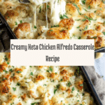 Keywords: Keto Chicken Alfredo Casserole, low carb casserole, cauliflower casserole, keto dinner, chicken Alfredo bake, cheesy casserole