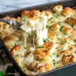 Keywords: Keto Chicken Alfredo Casserole, low carb casserole, cauliflower casserole, keto dinner, chicken Alfredo bake, cheesy casserole