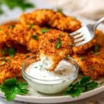 These Keto Fried Chicken Tenders are a low-carb, high-protein delight perfect for keto and low-carb diets. Marinated in dill pickle juice for tangy flavor, coated with a crispy almond flour and pork panko crust, and fried in avocado oil for a golden, crunchy exterior, they make a delicious and satisfying meal option.