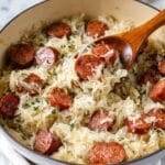 Keywords: kielbasa, sauerkraut, sausage skillet, Polish recipe, comfort food, easy dinner