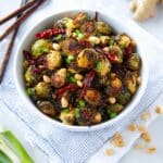 Keywords: Kung Pao Brussels Sprouts, Roasted Brussels Sprouts, Chinese-style Brussels Sprouts, Gluten Free Vegan Side Dish, Spicy Brussels Sprouts