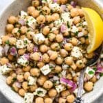 Keywords: Lemon chickpea salad, chickpea feta salad, vegan chickpea salad option, Mediterranean salad, healthy chickpea recipe