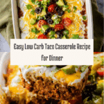 This Low Carb Taco Casserole is a flavorful and satisfying dish perfect for a weeknight dinner. Packed with seasoned ground beef, cauliflower rice, and melted cheddar, it offers all the taco taste without the carbs. Customize with your favorite fresh toppings for a delicious meal everyone will love.