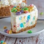 Keywords: Lucky Charms cheesecake, no-bake cheesecake, marshmallow cheesecake, fun dessert, cereal cheesecake, easy cheesecake recipe