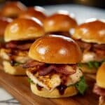 Store any leftover cooked chicken and bacon separately in airtight containers in the refrigerator for up to 3 days. Keep slider buns at room temperature in a sealed bag. Reheat chicken and bacon gently in a skillet or microwave before assembling fresh sliders.