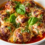 These meatballs with cheese and marinara sauce are a comforting and flavorful dish perfect for any weeknight meal. Juicy meatballs baked to golden perfection and topped with melty cheese and savory tomato sauce make a crowd-pleasing combination.