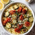 This Mediterranean Veggie Orzo Salad features perfectly roasted zucchini, bell peppers, and cherry tomatoes mixed with tender cooked orzo pasta. Tossed with a fresh, tangy lemon oregano dressing and complemented by crumbled feta and fresh herbs, this salad delivers a warm, comforting twist on classic Mediterranean flavors. Ideal for BBQs, potlucks, or as a make-ahead dish, it can be enjoyed warm or chilled.