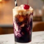 Keywords: Midnight Malibu Dirty Soda, Dr Pepper drink, coconut cream soda, blackberry syrup beverage, creamy soda, refreshing drink
