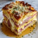 The Monte Cristo Breakfast Casserole is a delicious twist on the classic sandwich, layered with ham, turkey, Swiss cheese, and soaked in a flavorful egg custard. It’s a perfect make-ahead dish for brunch or a cozy morning gathering that everyone will love.