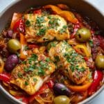 Moroccan Fish Tagine is a vibrant, flavorful dish combining tender white fish with a rich, spiced vegetable and chickpea stew. This recipe brings the warmth and aroma of North African cuisine right to your kitchen, perfect for a comforting weeknight meal.