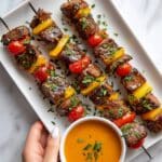 These Mouthwatering Grilled Moroccan Vegetable Skewers feature colorful bell peppers, zucchini, mushrooms, and onions marinated in a blend of warm Moroccan spices including cumin, coriander, paprika, and turmeric, enhanced by garlic, lemon juice, honey, and fresh herbs. Perfect for vegetarians and vegans, they’re ideal for summer cookouts or easy weeknight dinners, offering a healthy, flavorful, and visually stunning dish.