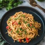 Keywords: Thai peanut noodles, spicy noodles, one pot meal, quick dinner, peanut sauce, sriracha noodles