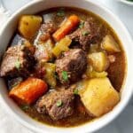 Store any leftover stew in an airtight container in the refrigerator for up to 3 days. Reheat gently on the stovetop or in the microwave until warmed through. This stew also freezes well—keep it in a freezer-safe container for up to 3 months. Thaw overnight in the fridge before reheating.