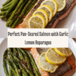 This Pan-Seared Salmon with Asparagus recipe features perfectly crispy salmon skin and tender, flavorful asparagus. The salmon is seared to develop a golden crust while staying moist inside, complemented by a zesty lemon butter sauce that brings the dish together beautifully. Ready in just 15 minutes, this simple yet elegant meal is perfect for a quick weeknight dinner or a special occasion.