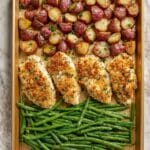 Keywords: Parmesan crusted chicken, sheet pan dinner, roasted potatoes, green beans, easy dinner, one-pan meal, baked chicken, garlic parmesan chicken