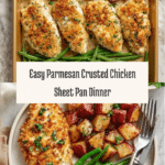 This Parmesan Crusted Chicken Sheet Pan Dinner is a delicious and easy all-in-one meal perfect for busy weeknights. Tender chicken breasts are coated with a flavorful Parmesan crust and roasted alongside crispy potatoes and fresh green beans. It’s a simple, satisfying dish that requires minimal cleanup.