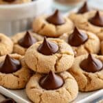 Keywords: Peanut Butter Blossoms, peanut butter cookies, Hershey’s Kisses cookies, holiday cookies, soft peanut butter cookies