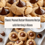 Peanut Butter Blossoms are classic soft peanut butter cookies rolled in sugar and topped with a signature Hershey’s Kiss in the center. These festive and nostalgic treats combine a tender, buttery peanut butter cookie dough with a perfect sweet chocolate finish, making them ideal for holiday celebrations and everyday snacking.