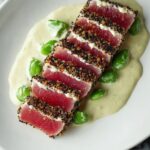 Pepper Crusted Tuna Steak with Wasabi Cream Sauce is a flavorful and elegant dish perfect for seafood lovers. The bold pepper crust complements the tender tuna, while the creamy wasabi sauce adds a zesty kick. It’s quick to prepare, making it ideal for a special weeknight dinner or entertaining guests.