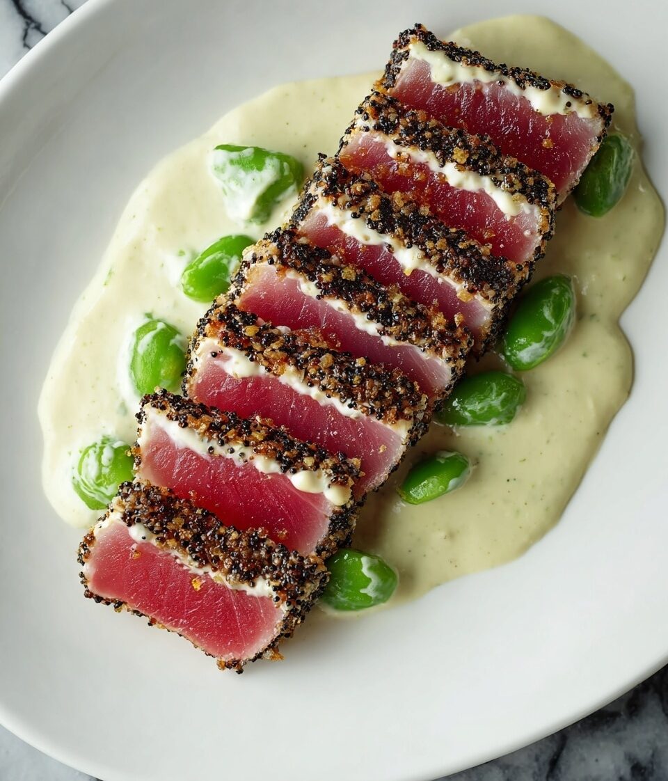This Pepper Crusted Tuna Steak with Wasabi Cream Sauce is a sophisticated and flavorful dish featuring sashimi-grade tuna coated in a bold pepper and sesame seed crust, seared to achieve a perfect rare center. Accompanied by a creamy wasabi-infused sauce that balances heat and tang, this recipe offers an elegant yet quick-to-prepare seafood entrée ideal for special occasions or a gourmet weeknight meal.