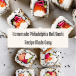 Keywords: Philadelphia Roll, Sushi Recipe, Smoked Salmon Sushi, Cream Cheese Sushi, Homemade Sushi, Japanese Roll