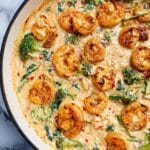 A flavorful and creamy prawn orzo dish infused with sun-dried tomatoes, fresh vegetables, and a blend of spices. This quick one-pan meal combines tender king prawns, roasted orzo, and a rich sauce, making it a perfect weeknight dinner that’s both satisfying and easy to prepare.