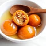 This Pumpkin Tang Yuan recipe features delicate glutinous rice balls infused with pumpkin puree and filled with a simple yet rich peanut filling made from almond butter and chopped nuts. These soft, chewy, and subtly sweet dumplings are perfect for a comforting dessert or festive treat, offering a delicious twist on traditional Tang Yuan with the natural sweetness of pumpkin and a nutty surprise inside.