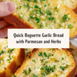 This Quick Baguette Garlic Bread recipe transforms a crusty French baguette into a warm, crispy, and buttery delight infused with fresh garlic, parsley, and Parmesan. Ready in under 30 minutes, it’s a simple yet flavorful side dish that pairs perfectly with pasta, soups, salads, and more, delivering restaurant-quality garlic bread at home with easy-to-find ingredients.