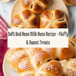 Delight in these soft and fluffy Red Bean Milk Buns filled with sweetened red bean paste. This classic Asian-inspired bread recipe combines tender dough enriched with milk and cream, wrapped around a luscious red bean filling, then baked to golden perfection and topped with a shiny egg wash and sesame seeds. Perfect as a comforting snack or a sweet treat any time of the day.
