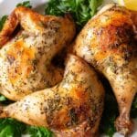 Keywords: roasted chicken, half chicken recipe, garlic butter chicken, easy roast chicken, oven roasted chicken, homemade chicken recipe