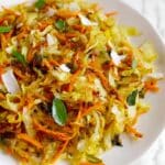 This Indian Cabbage recipe is a flavorful and nutritious roasted vegetable dish featuring shredded cabbage and carrots tossed with aromatic spices and herbs. Roasted to perfection in the oven, the cabbage becomes tender and slightly caramelized, enhanced by fresh grated coconut, cilantro, and a tangy lemon juice finish. Finished with a crunchy topping of crushed peanuts or sesame seeds, this dish pairs wonderfully with rice for a wholesome meal.