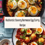Savory Burmese Egg Curry is a flavorful dish that combines perfectly boiled eggs with a rich, spiced tomato-based sauce. This comforting curry offers layers of aromatic spices and a hint of umami, making it a delicious option for any meal.