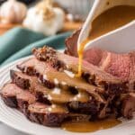 - Step 7: Slice or shred the beef and serve with the homemade gravy spooned over the top.