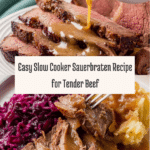Keywords: Sauerbraten, Slow Cooker Sauerbraten, German Beef Roast, Slow Cooked Meat, Gingersnap Gravy, Traditional Sauerbraten Recipe