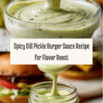 This spicy dill pickle burger sauce adds a zesty twist to your classic burger toppings. Creamy, tangy, and just a bit spicy, it’s perfect for enhancing burgers, fries, sandwiches, or wraps with bold flavor.