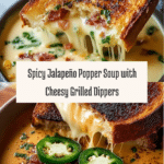 This Spicy Jalapeño Popper Soup with Grilled Cheese Dippers is a cozy, creamy soup inspired by the flavors of classic jalapeño poppers. Loaded with crispy bacon, sharp cheddar, cream cheese, and a kick of jalapeños, this soup is perfectly paired with golden, melty grilled cheese sandwich strips for dipping. It’s an indulgent comfort meal with layers of smoky, spicy, and cheesy goodness.