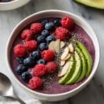 This Superfood Berry Avocado Immunity Bowl is a nutritious and vibrant smoothie bowl packed with antioxidants from mixed berries, healthy fats from avocado, and plant-based protein from soy milk. Topped with fresh blueberries, chia seeds, and sliced almonds, this bowl is a perfect, refreshing start to your day or a wholesome snack that supports immune health and overall wellbeing.