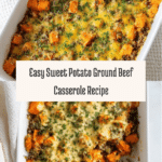 Keywords: sweet potato casserole, ground beef casserole, easy dinner casserole, roasted sweet potatoes, cheesy beef casserole, weeknight dinner ideas