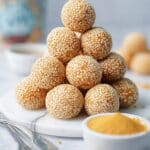 Store leftover sesame balls in an airtight container at room temperature for up to 2 days. To reheat, gently warm them in a low oven or toaster oven to restore their crispiness without making them soggy. Avoid microwaving as it can make the coating soft.