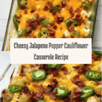 This Tasty Jalapeno Popper Cauliflower Casserole is a creamy, cheesy baked dish featuring roasted cauliflower mixed with cream cheese, spicy jalapenos, crispy bacon, and topped with melted cheddar cheese. It’s a flavorful, comforting casserole perfect as a side or low-carb main.