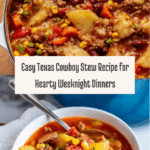 This Texas Cowboy Stew is a hearty and flavorful dish perfect for busy weeknights. Packed with ground beef, kielbasa, vegetables, and warming spices, it’s a comforting meal that’s quick and easy to prepare.