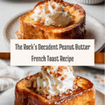 The Rock’s French Toast is a decadent breakfast dish featuring thick brioche soaked in a spiced custard, pan-fried to golden perfection, and finished in the oven. Served with a luscious peanut butter and maple syrup sauce, tropical coconut cream, fluffy whipped cream, and toasted coconut flakes, this recipe combines indulgent flavors and textures to create a memorable morning treat.