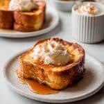- Plate and garnish: Place the hot French toast on serving plates, drizzle generously with the peanut butter and maple syrup sauce, dollop whipped cream on top, and finish with a sprinkle of toasted coconut flakes for added texture and tropical flavor.