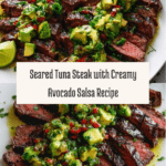This Tuna Steak with Avocado Salsa recipe offers a luxurious dining experience that’s budget-friendly. The seared tuna steaks are buttery and tender, complemented perfectly by a creamy, zesty avocado salsa bursting with fresh flavors. Ready in under 30 minutes, it’s an elegant yet simple dish ideal for a quick dinner or entertaining guests.