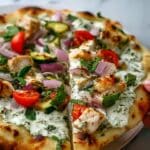Tzatziki Chicken Naan Pizza is a fresh and flavorful twist on traditional pizza. Combining creamy tzatziki sauce with tender chicken and vibrant Mediterranean toppings, this recipe is perfect for a quick and delicious meal.