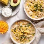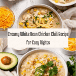 This White Bean Chicken Chili is a comforting fall favorite featuring tender chicken, creamy great northern beans, sweet corn, and mild green chilis simmered to perfection in a flavorful broth with a touch of richness from heavy cream. Enhanced with cumin, oregano, and chili powder, this chili is perfect for cozy gatherings and offers versatile topping options like cilantro, cheese, avocado, and sour cream for personalized flavor.